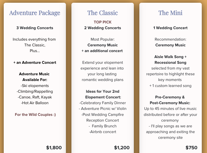 Elopement Concert Packages